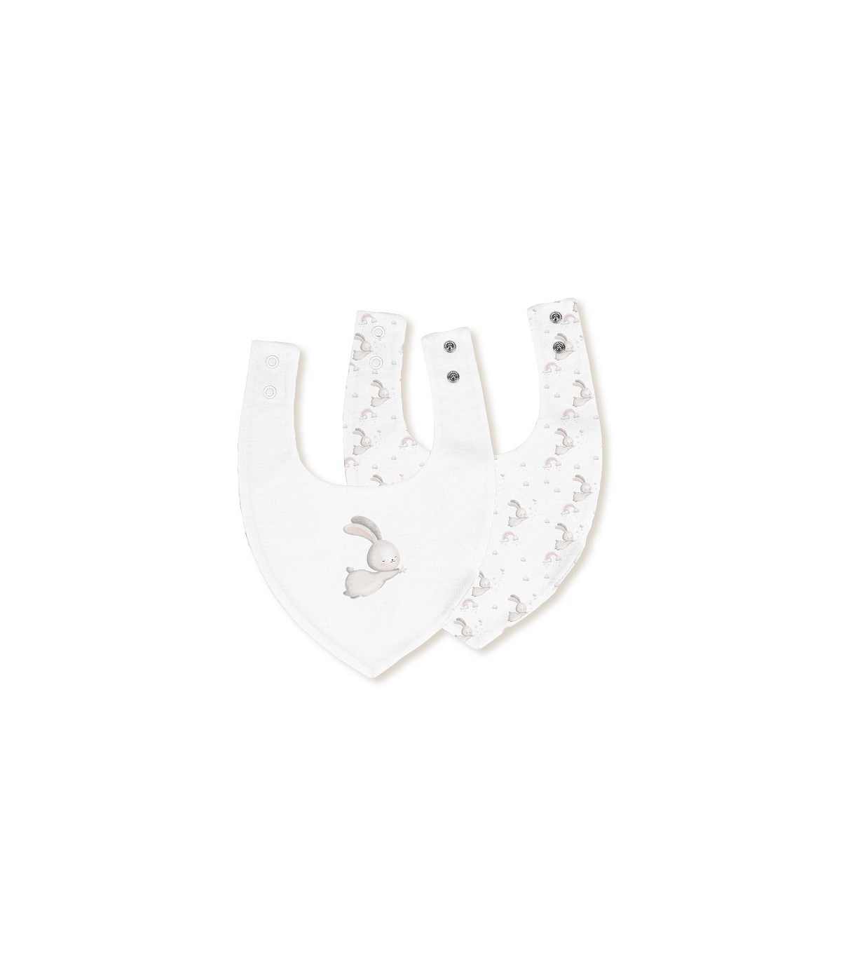 Pareja de baberos bandana de algodón 100% con dibujo de conejo muy dulce y tierno.