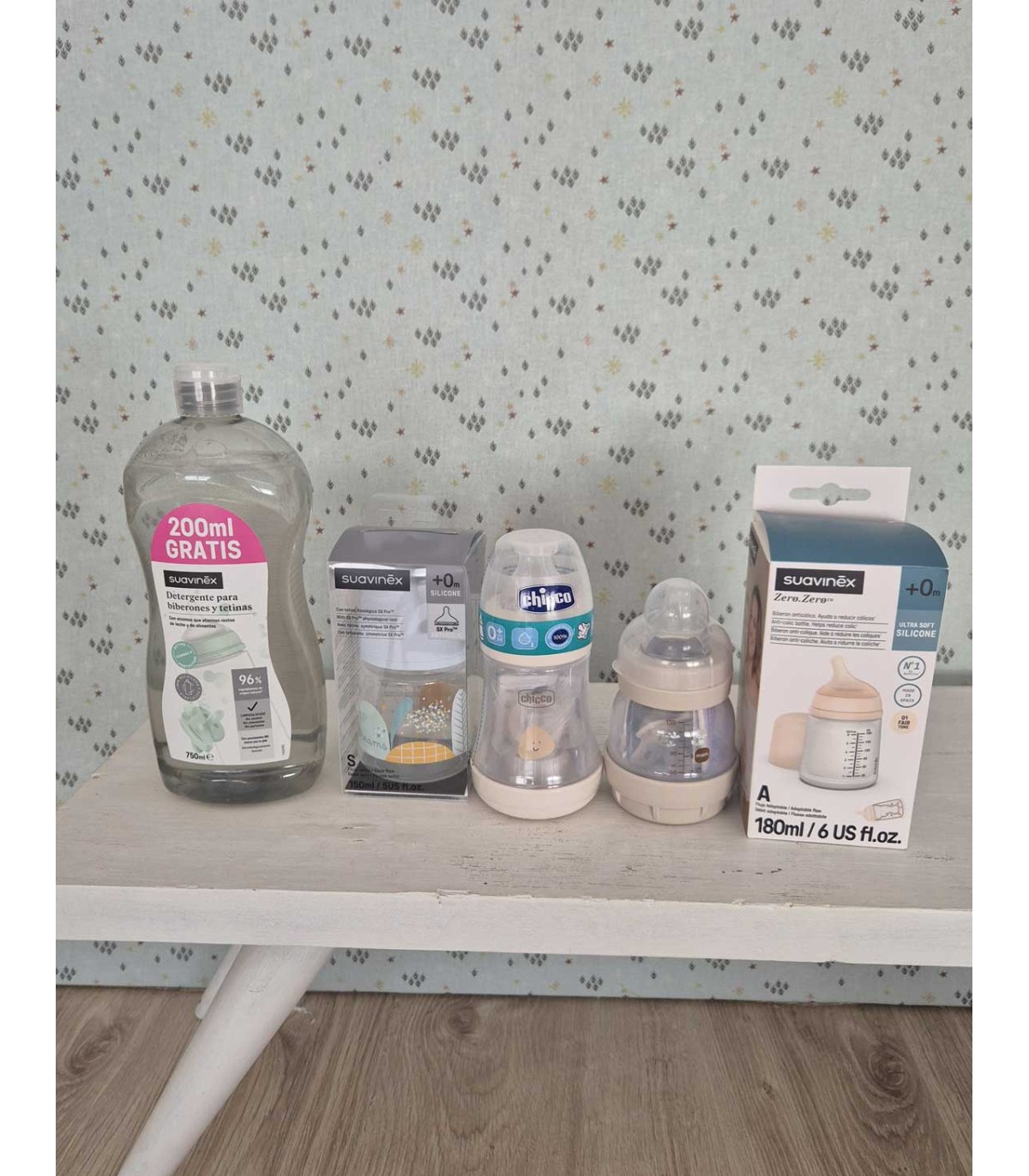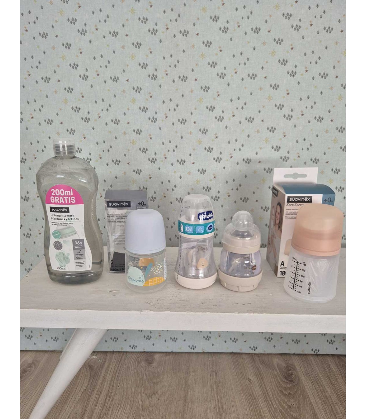 - Biberón Chicco recién nacido (con chupete).