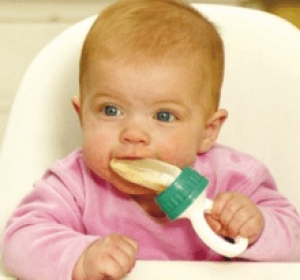 6. Dale a tu bebé el alimentador antiahogo y disfruta de vera tu hijo experimentar texturas y sabores distintos.