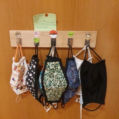 - Si eres manitas, te puedes hacer muy fácilmente un perchero para mascarillas limpias y colocarlo con cinta de doble cara en la puerta para no olvidarte nunca la tuya en casa.