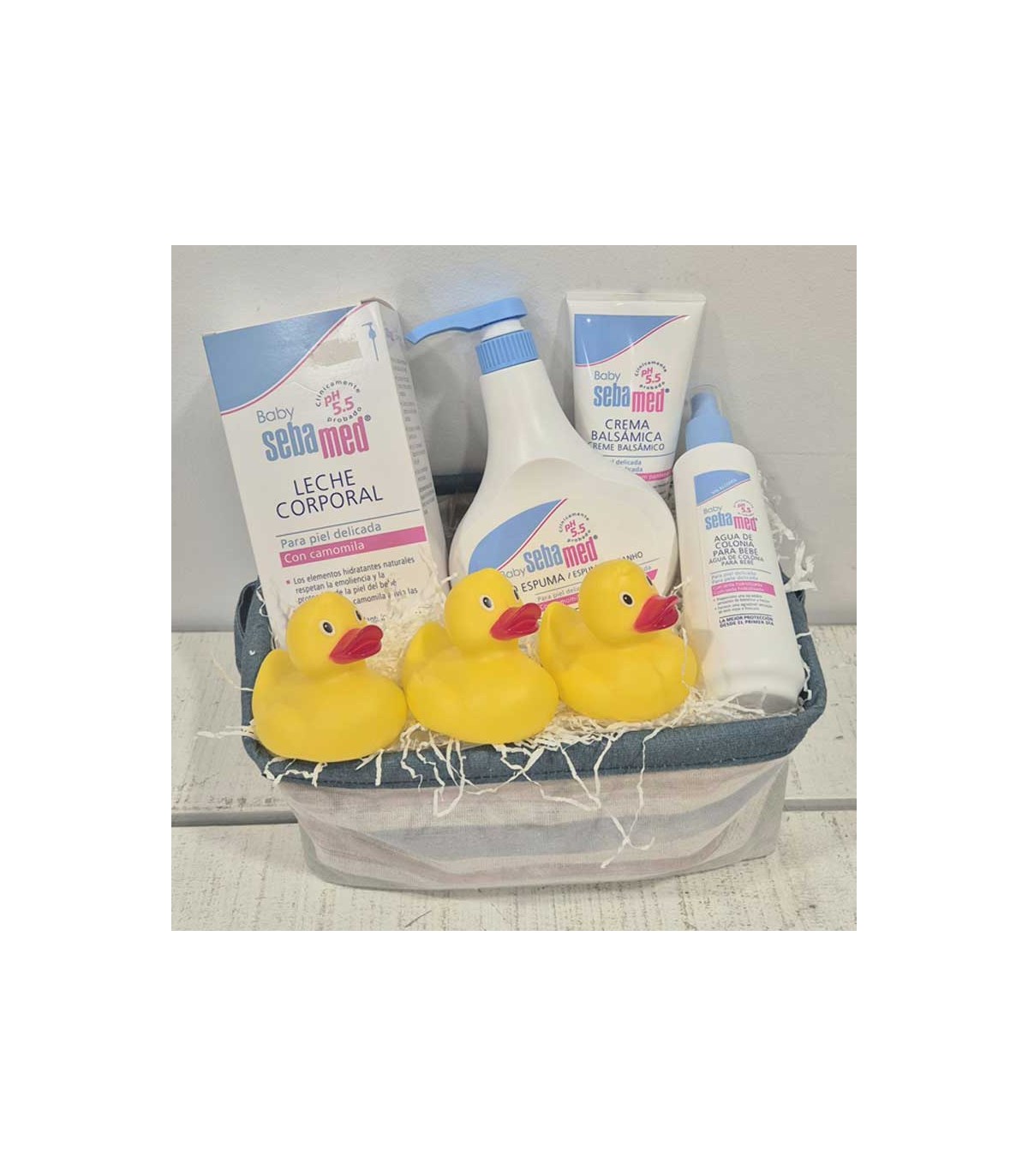 - Esta cesta incluye el gel baño espuma SEBAMED BABY, un limpiador en textura gel cremosos especialmente diseñado para limpiar la piel de tu bebé cuidándola. Con una textura untuosa y fácilmente aplicable tanto con la mano como con esponja. Es apto desde el nacimiento hasta toda la infancia.